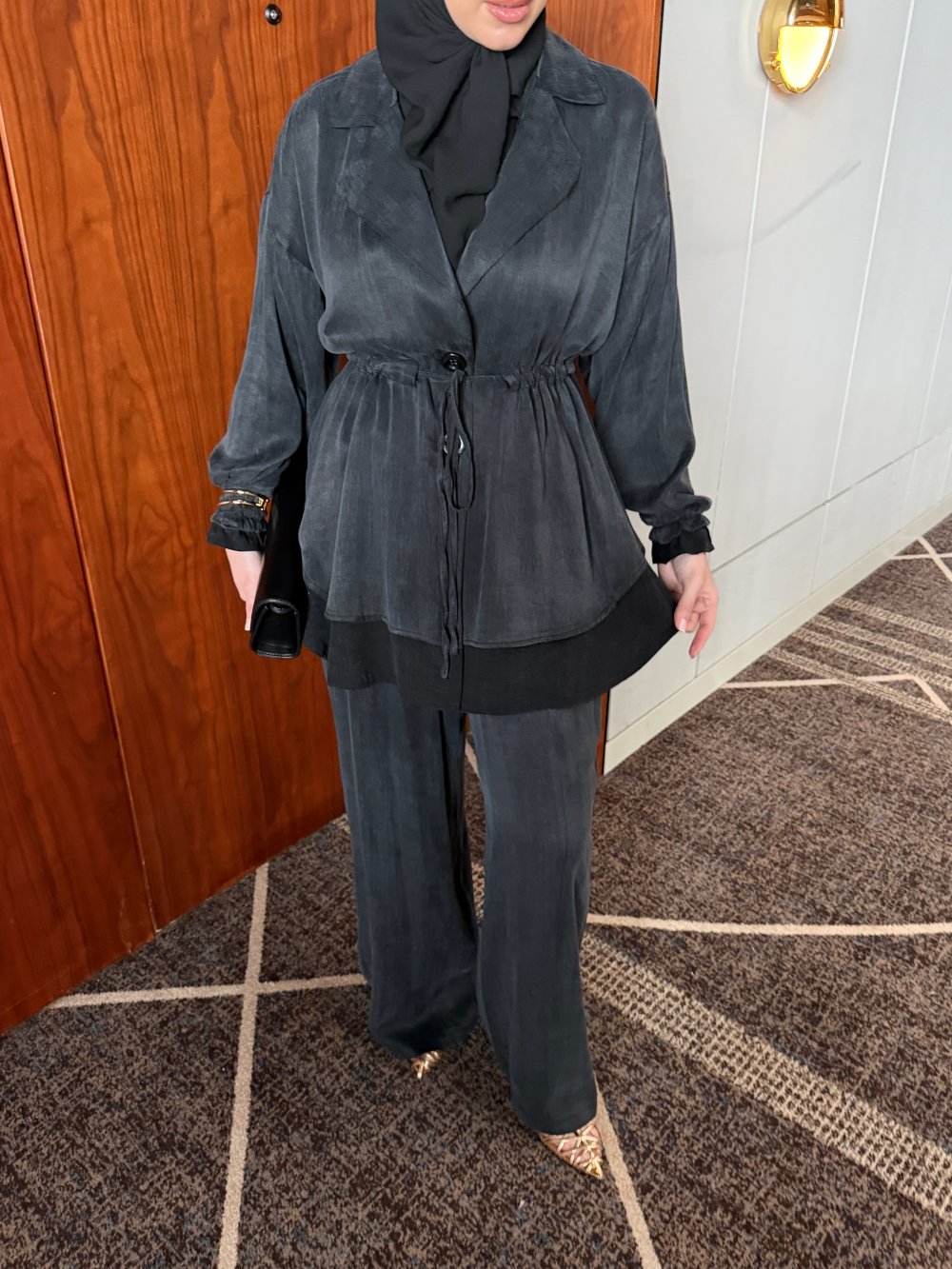 Takım Pantolon Geniş Paça Formundadır.