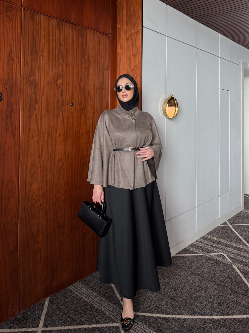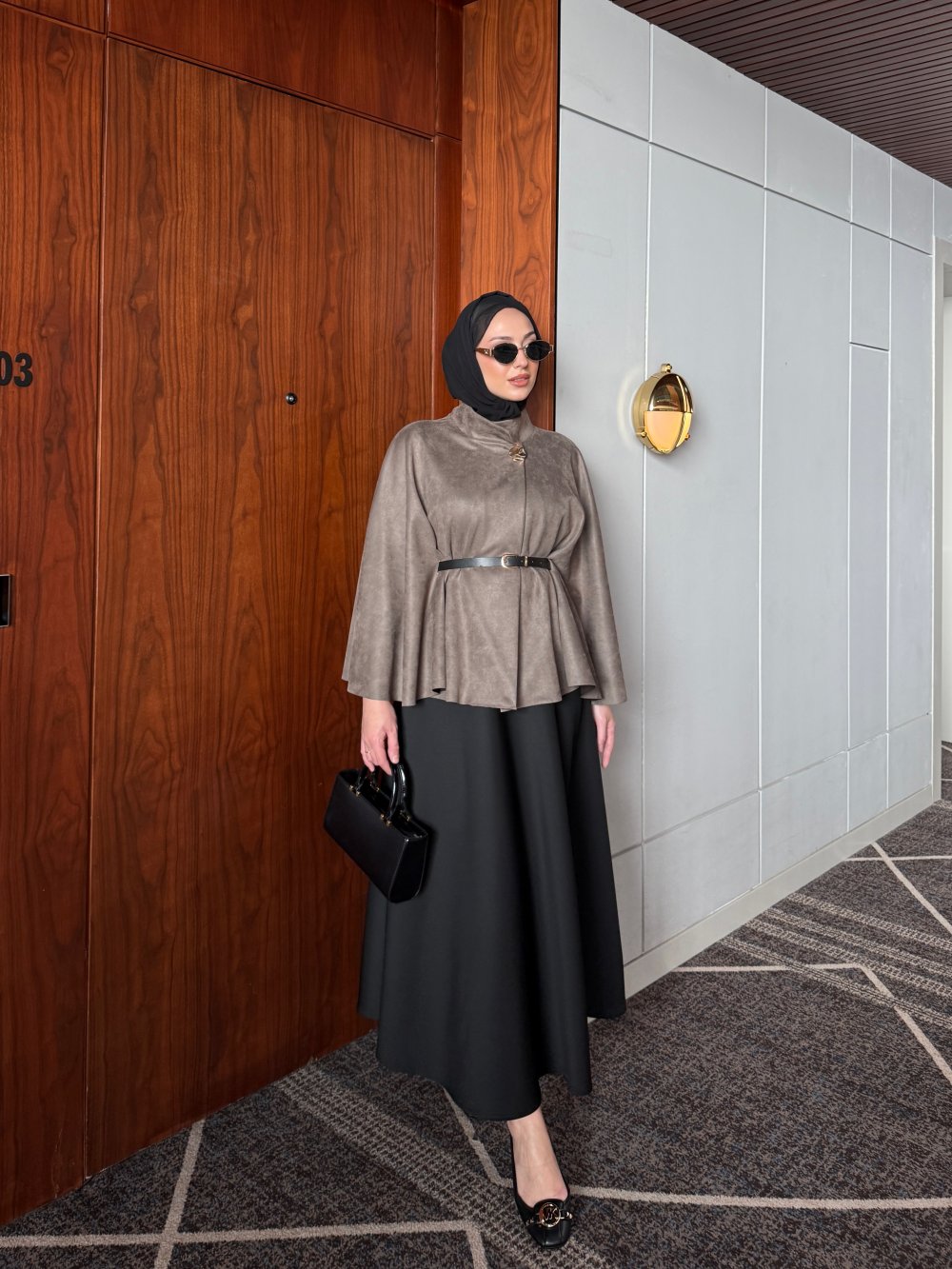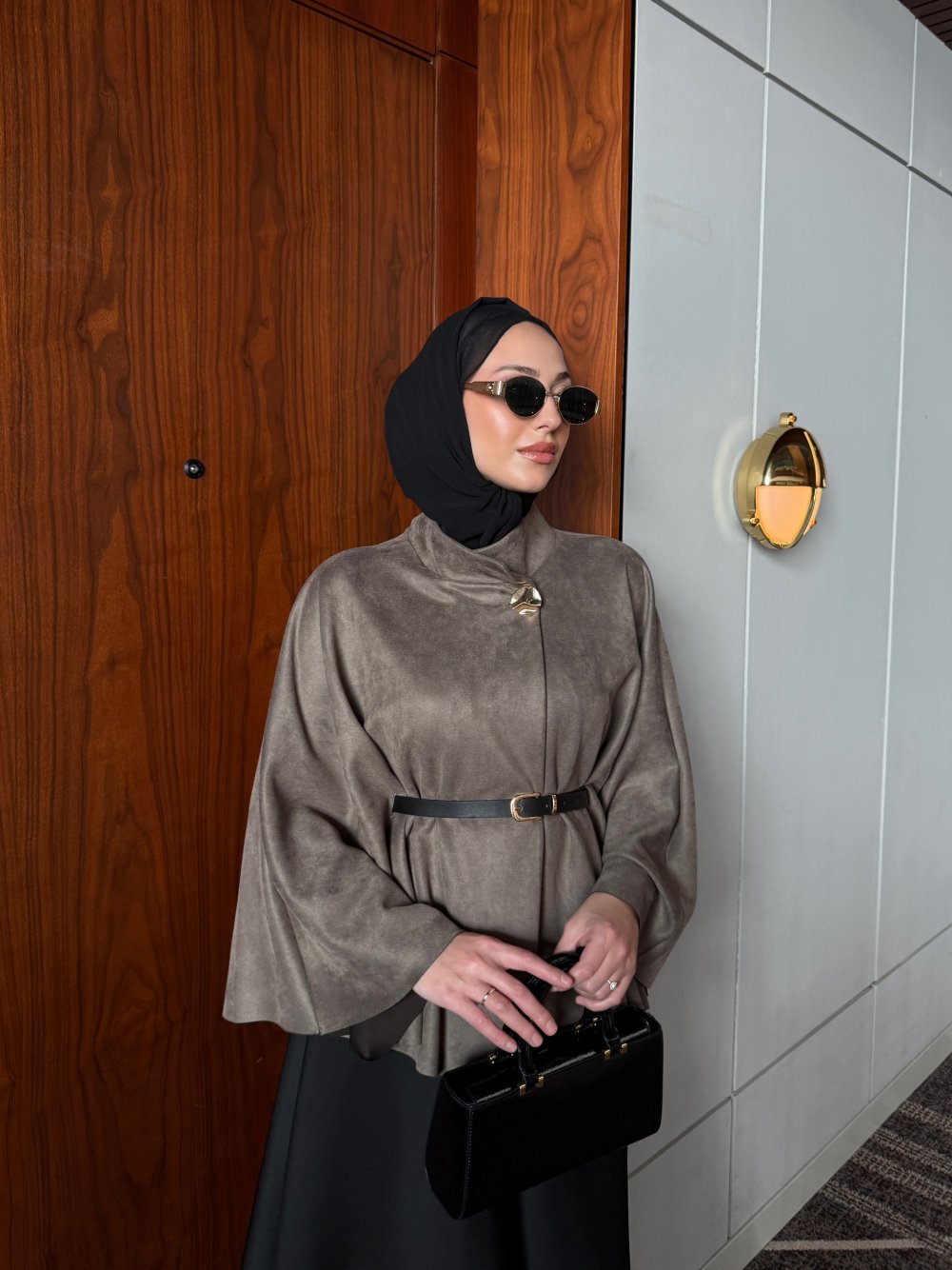 Panço 1.Sınıf Süet Kumaştır Panço Yakası Düğme Detaylıdır Panço Kemerlidir Panço Boy 65cm