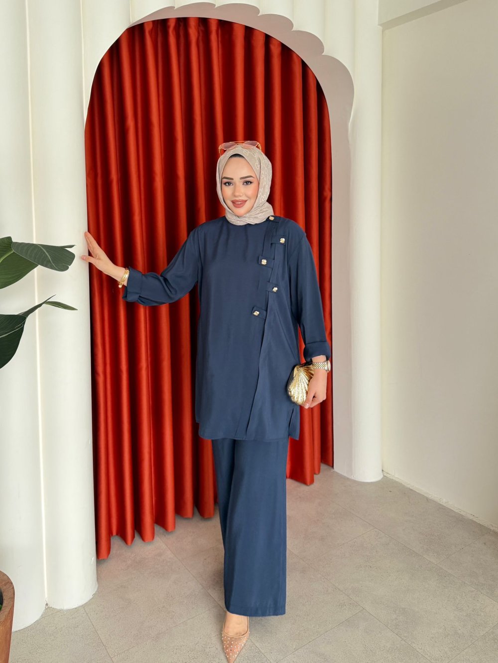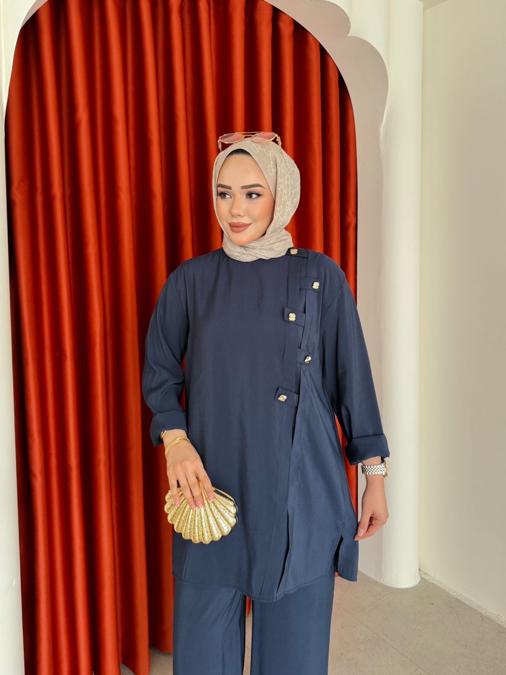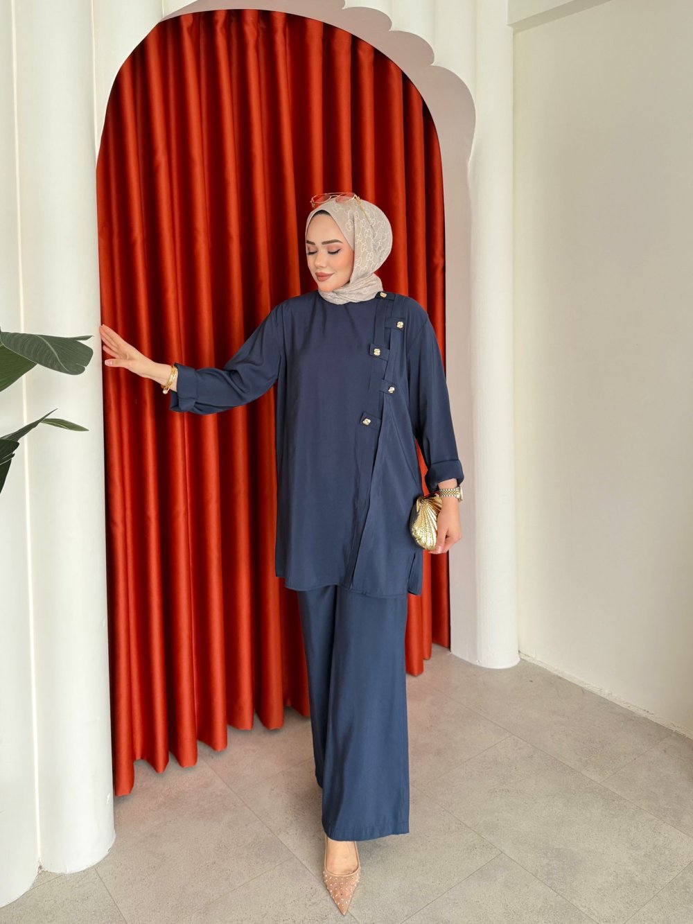 Takım 1.Sınıf Tensel Kumaştır.Tunik Yaka Arkasından Fermuarlıdır.Tunİk Şerit Ve Gold Düğme Detaylıdır.Pantolon Beli Lastiklidir.Tunik Boy:85cm Omuz:49cm Göğüs:55cmPantolon Boy:135cm Bel:36cm