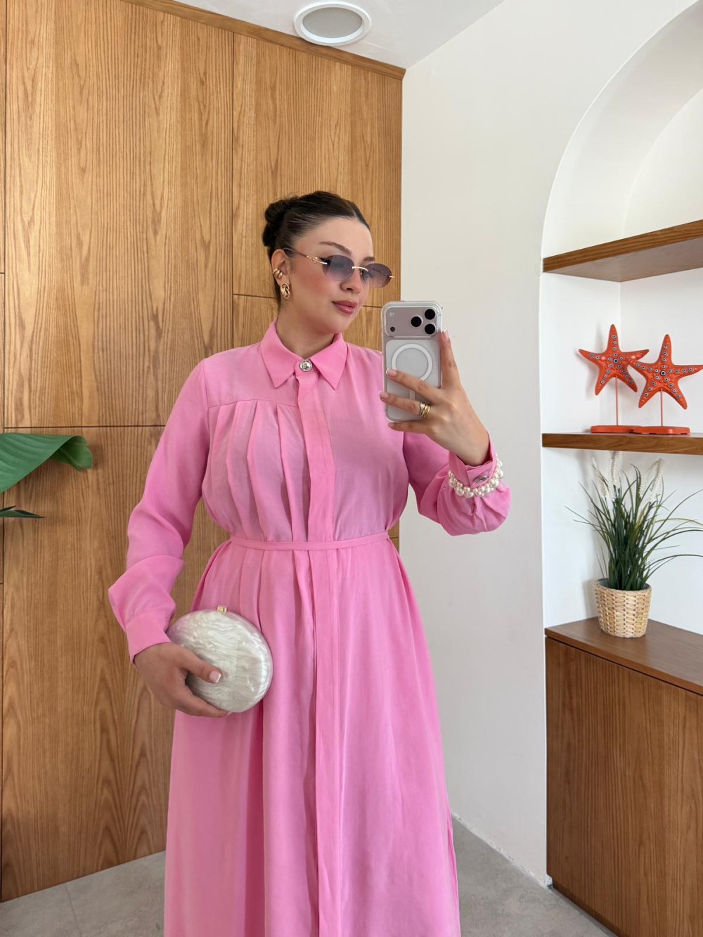 Gömleğin Önü Düğmelidir ve İnce İp Kemeri Vardır
