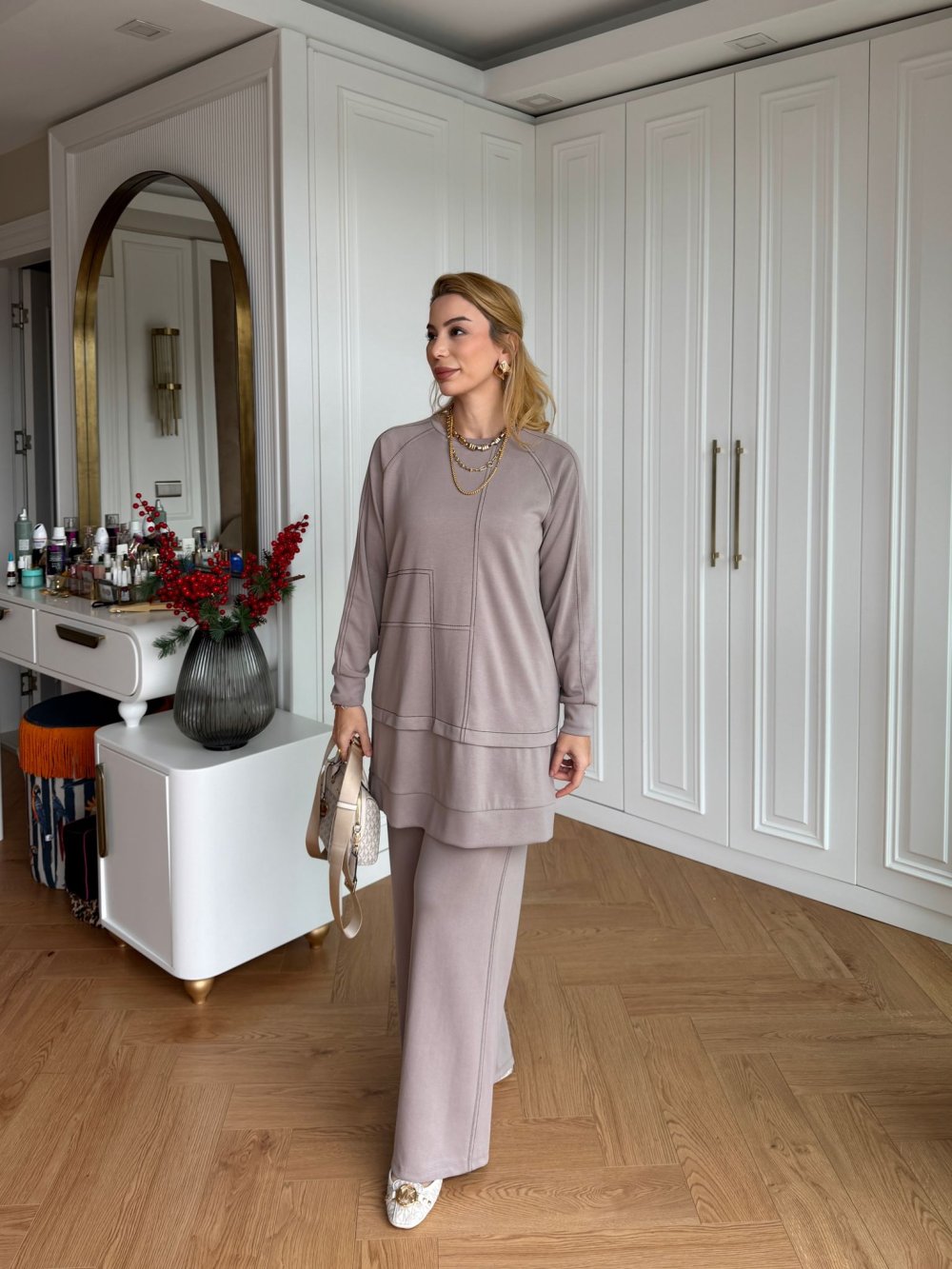 Sevim Pantolonlu Takım Krem