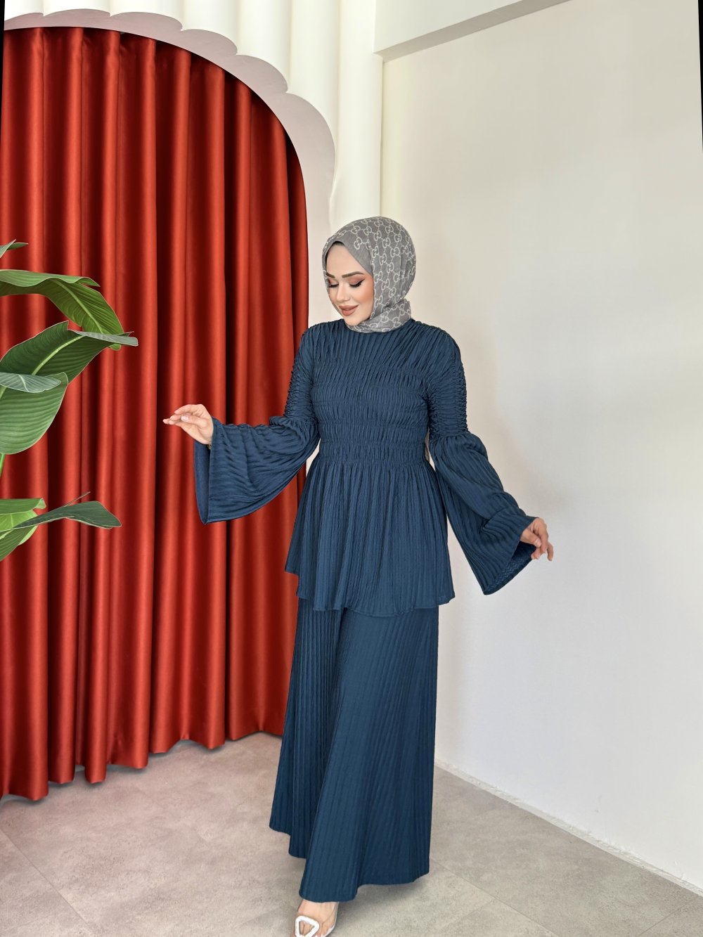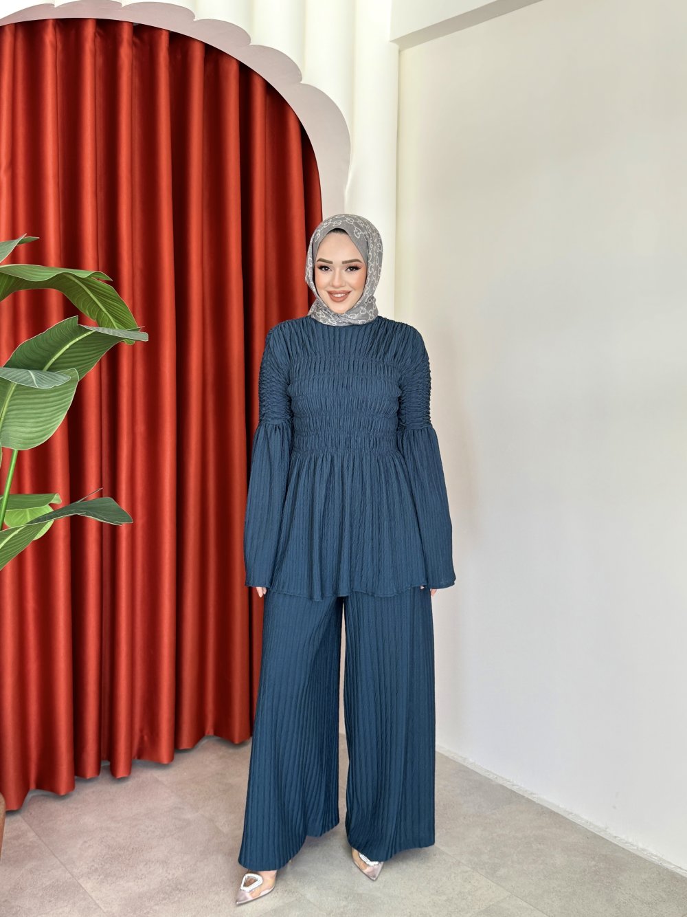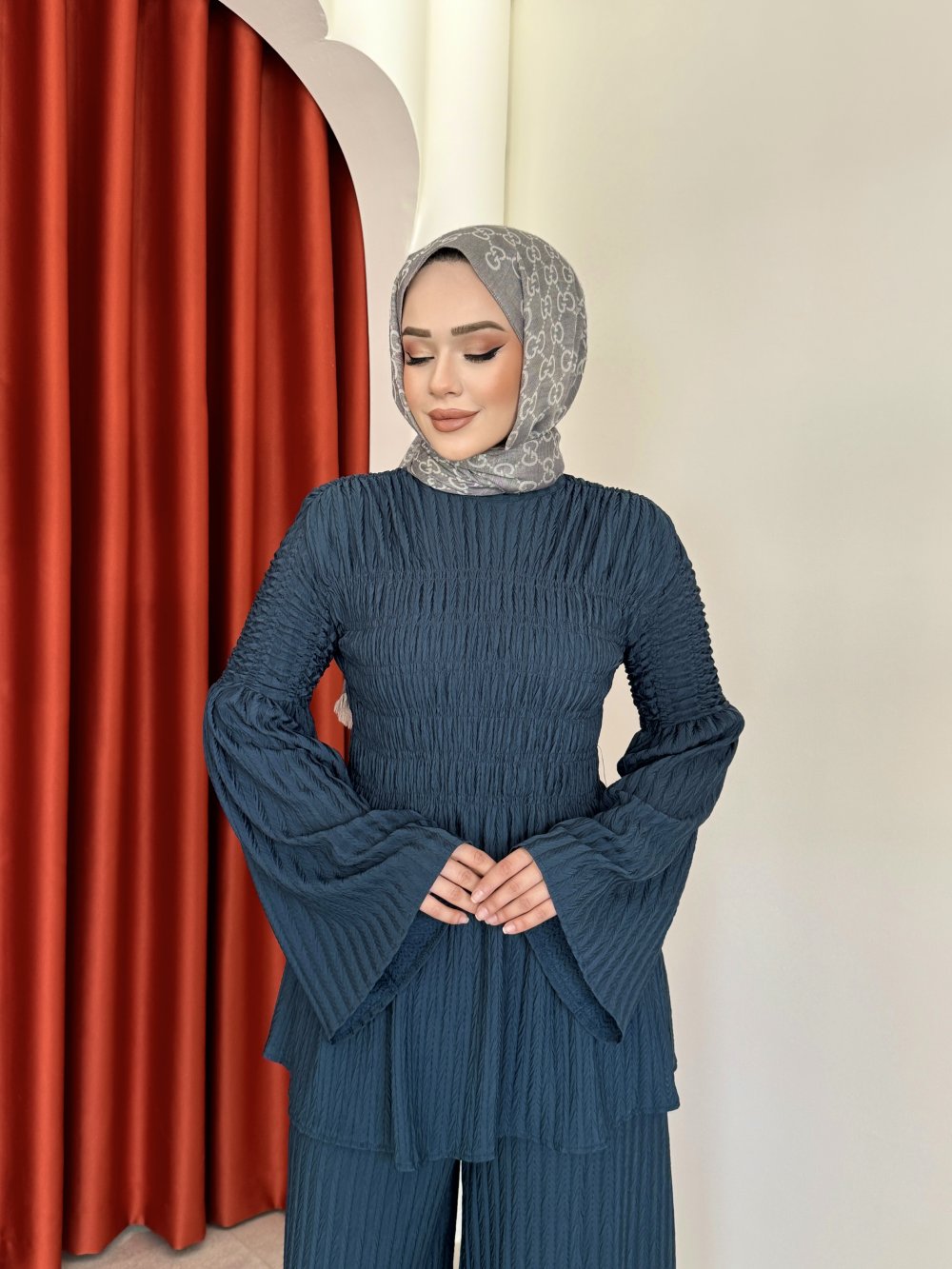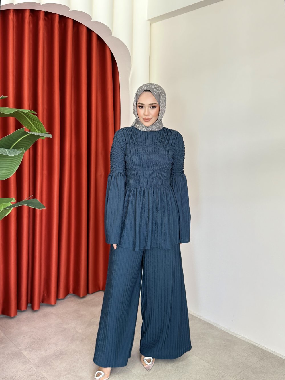 Takım 1 Sınıf Örme Kumaştır.Takım Lastik Büzgülü Modeldir.Pantolon Beli Lastiklidir.Tunik Omuzları Düşük Modeldir.Tunik Boy 73cm Göğüs 100cm Göğüs 100cm Pantolon Boy 108cm Basen 120cm